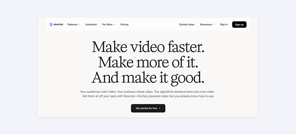 You can use it for podcasts and video editing, as well as creating clips and video captions for social media posts. You can even go further and create online courses with the help of Descript. The tool is available on a free plan to get started with your creative journey, but you can easily upgrade to one of the paid plans starting from $19/month ($12/month if billed yearly).