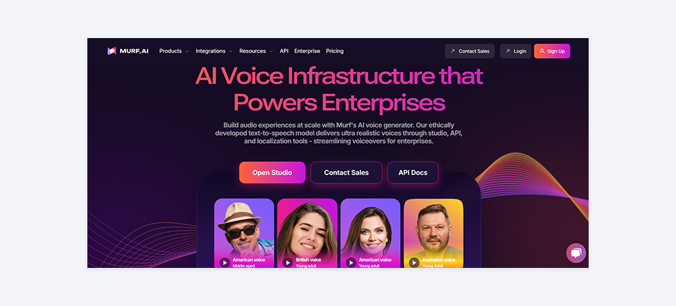 Murf.ai provides realistic AI voices for text-to-speech applications, enabling creators to generate voiceovers for videos, podcasts, and audiobooks. Text-to-speech generation allows users to convert written text into spoken audio with a wide selection of AI voices. You can choose from a diverse library of voices in multiple languages and accents to reach global audiences.