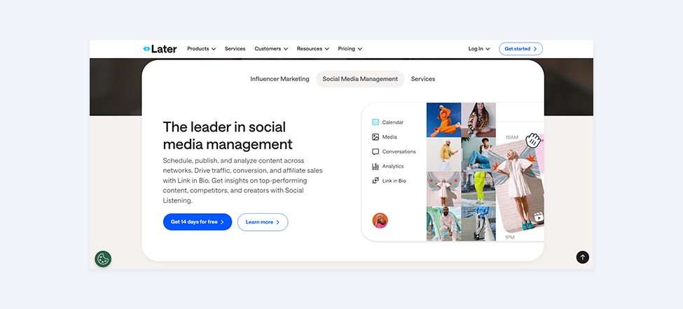 Later offers a wide range of useful features. The media library allows you to store and organize photos and videos, making it easy to access and use content for posts. The platform offers hashtag suggestions to help creators reach a wider audience and increase the visibility of their posts. Later also has tools to help find and manage UGC. This helps creators to utilize content created by their fans and customers.