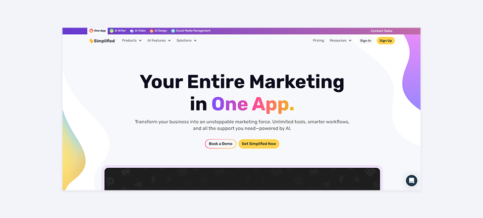 Simplified offers an all-in-one platform for writing, design, video, and social media management, including AI-powered social media content generation and scheduling. AI Writer helps you turn ideas into blog posts, essays, and articles. AI Design, in turn, can be used to create images, presentations, thumbnails, and ads. AI Video empowers you with tools to generate videos, clips, voiceovers, and subtitles for your videos.