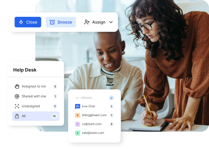 Help Desk is a shared inbox that centralizes all incoming customer emails and messages, ensuring no request is ever lost. It transforms a chaotic support email address into an organized and collaborative workspace. The core feature of Help Desk is that you can easily connect it with your existing email inbox. When a message arrives, you can assign it to a particular team member to avoid double-handling, change the conversation status to open, snoozed, or closed, and collaborate in real time with others and discuss the issue without the customer seeing the internal notes. It provides a unified view of every customer interaction.