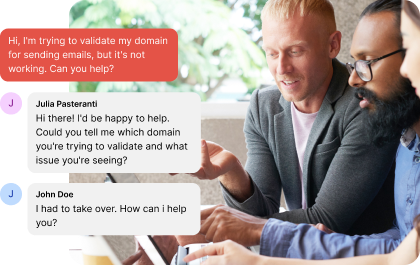 David is a business development representative at a B2B provider of custom AI software. His role is to qualify leads from the company website. His company uses the Live Chat widget on its contact sales page. They enabled user identification by asking for the name and email address of the visitor, for them to be able to start a chat. Owing to that, when a visitor starts a chat asking about, for example, enterprise pricing, David already knows their basic contact information and engages with them in a real-time conversation. He can also continue the conversation via email, even if the visitor leaves the chat. If the visitor asks a complex technical question that David can’t answer, he uses Team Chat to send a quick direct message to another colleague asking for a consultation. Once he receives an expert answer, David can relay it back to the visitor instantly via Live Chat, demonstrating a highly responsive and collaborative sales process.